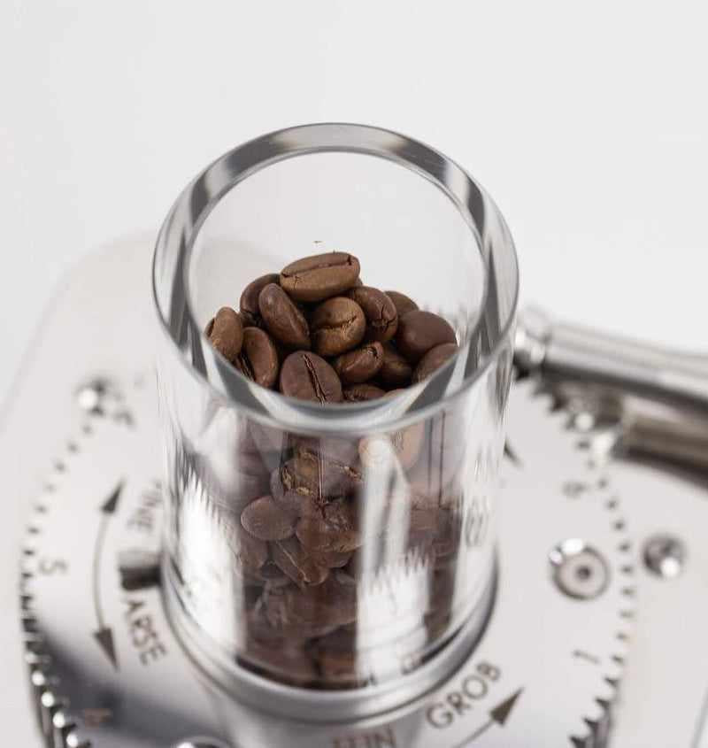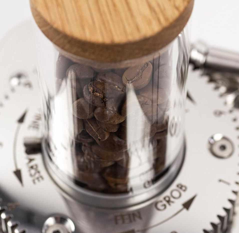 Zažijte čerstvě mleté kávové boby každý den s naším kompaktním zásobníkem na kávové boby od Wiedemann manufaktury. Náš produkt je navržen tak, aby pojmul pouze množství bobů, které se spotřebují během jednoho dne, a proto se nazývá "Day hopper".