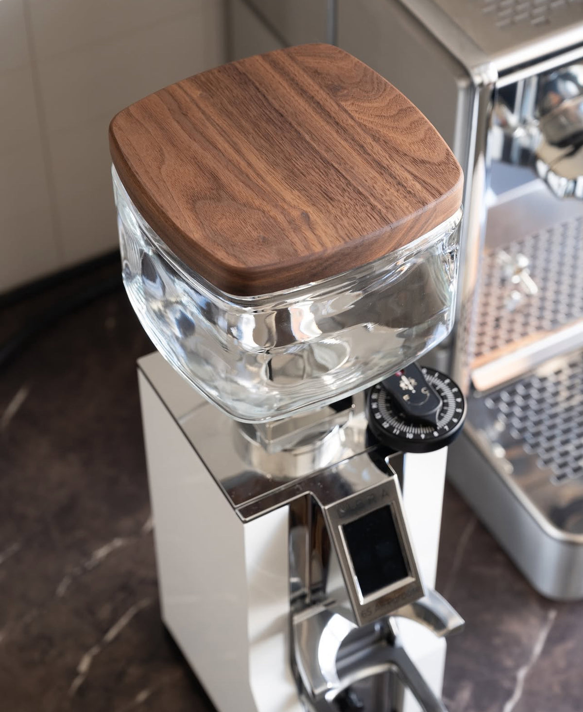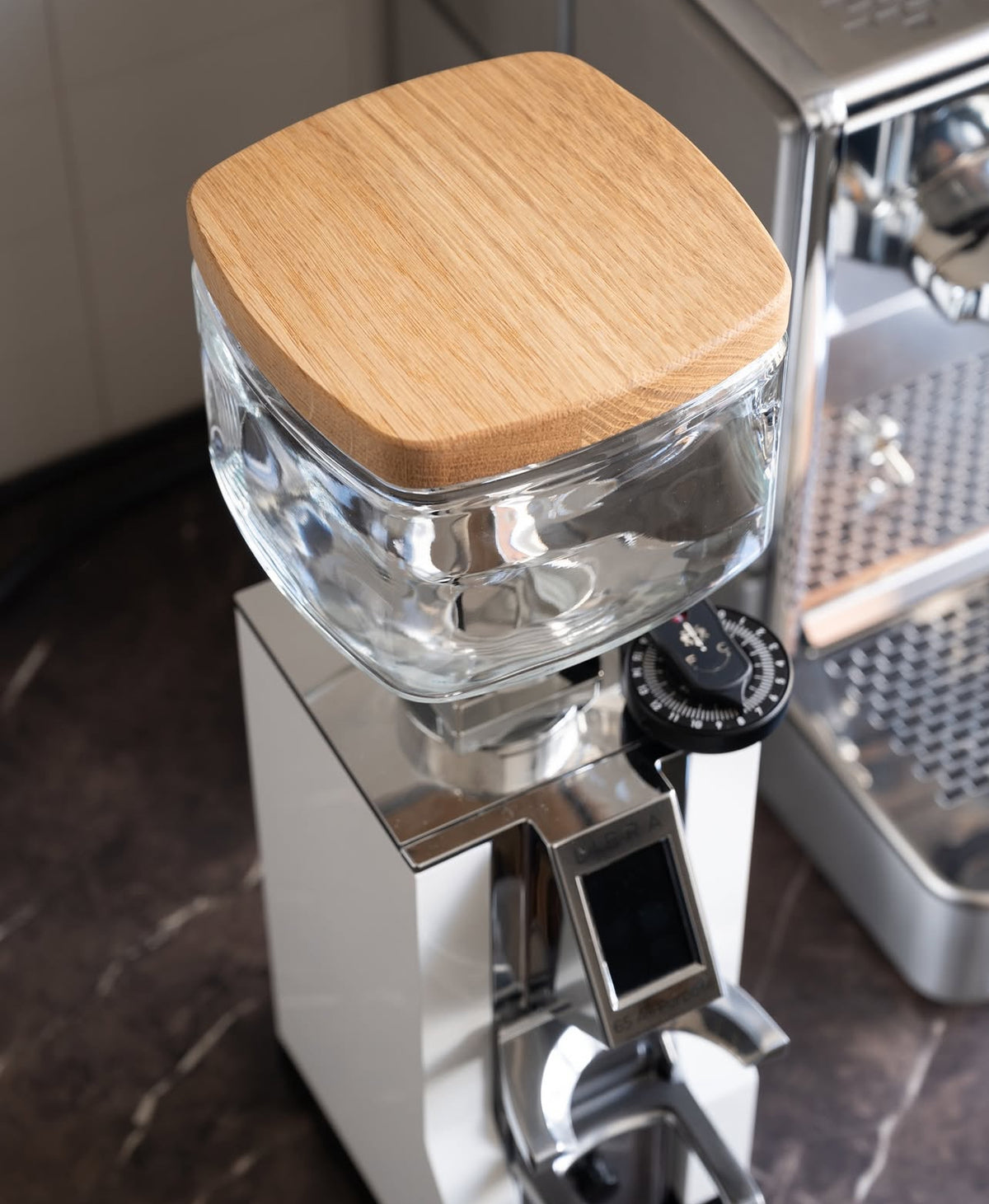 Toto ručně vyrobené víko z masivního dřeva je vyrobeno na míru pro Eureka Skleněná nádoba Mignon o objemu 500 g. Jednoduchý, ale stylový způsob, jak vylepšit vzhled i dojem z mlýnku na kávu – ideální pro ty, kteří oceňují materiály s duší.