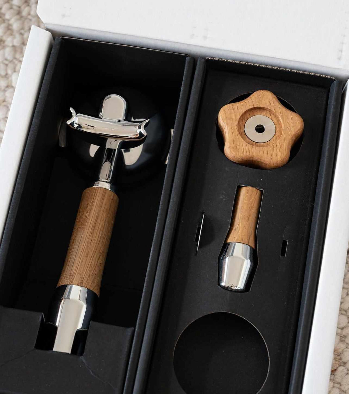 Naše rukojeť s designem "Elegant" přichází s originálními portafilter hlavami od ECM, zatímco všechny ostatní portafilter mají portafilter hlavy z nerezové oceli. Každý den naše rukojeť poskytuje haptický zážitek, který je výjimečný. Naše dřevo je ručně ošetřeno organickým tvrdým olejem, aby byla zachována přirozená pocit dřeva.