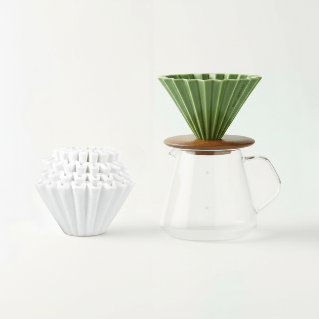Origami dripper se stal oblíbeným mezi baristy po celém světě díky své schopnosti zvýraznit přirozenou sladkost a komplexnost kávy. S touto sadou získáte vše potřebné k tomu, abyste doma zažili japonskou kulturu přípravy kávy – od prvního louhování až po dokonalý šálek.