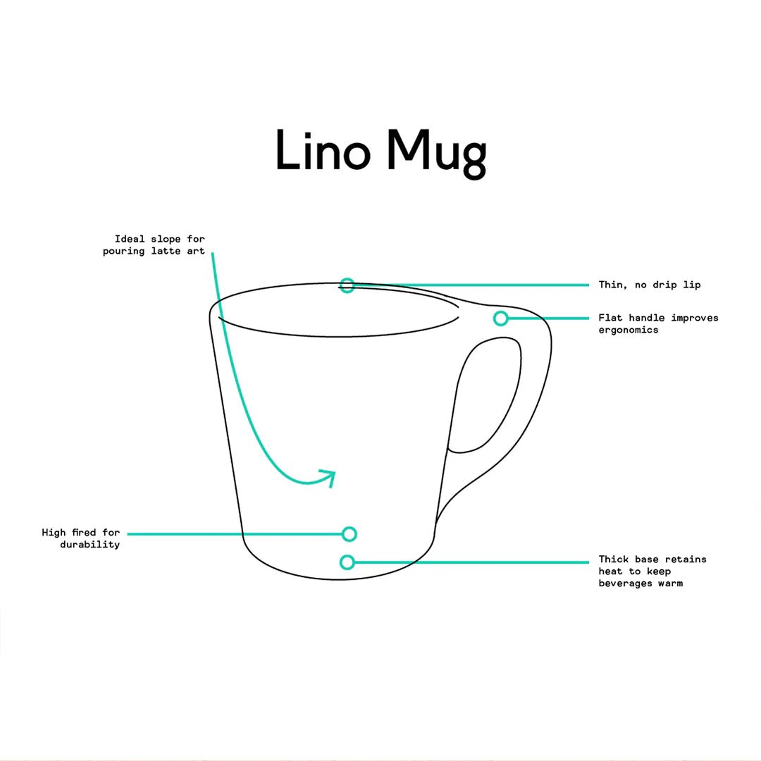 - Dostupné verze v řadě Lino: Espresso šálek 9 cl, cappuccino šálek 18 cl, latte šálky 24 cl a 36 cl, kávový šálek 30 cl, talíře Pulled, mlékovka a barevné hrnky