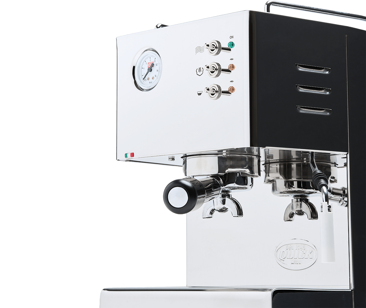 Materiál: Plně nerezová ocel; Quick Mill filtrovaná káva skupina s O-kroužkem; parní tryska s aerátorem