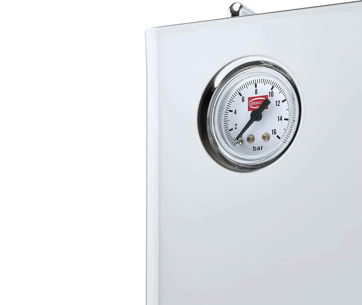 Manometr (0–16 bar) ukazuje tlak filtrované kávy, takže můžete upravit mletí a dávkování pro přesnou a vyváženou extrakci.