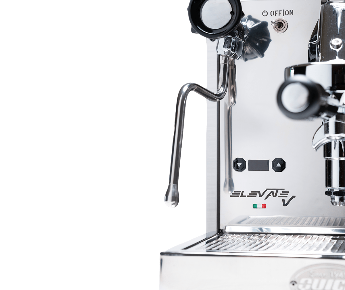 Elevate V je vybaven exkluzivními ergonomickými ventily Quick Mill a tyčemi s ochranou proti popálení — ideální pro napěnění mléka a bezpečnější manipulaci.