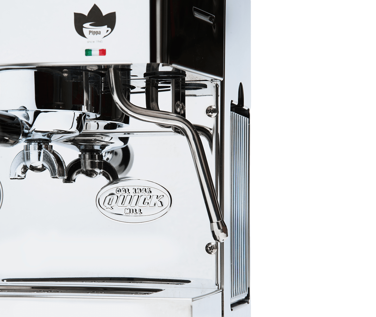 Quick Mill Pippa je stylový a kompaktní single boiler-espressovač, který nabízí impozantní výkon v malém formátu. Díky své ručně vyráběné italské konstrukci, robustní mosazné varné komoře a jasnému tlakoměru získáte plnou kontrolu nad extrakcí—ideální pro ty, kteří chtějí začít brát espresso vážně. Profesionální parní tryska poskytuje hedvábně jemnou mikopěnu pro cappuccino a latte, zatímco vibrační pumpa s redukovanou hlučností zajišťuje klidné a příjemné filtrovaná káva. Elegantní přístroj, který pozvedne váš každodenní život s konzistentním, vyváženým espressem.
