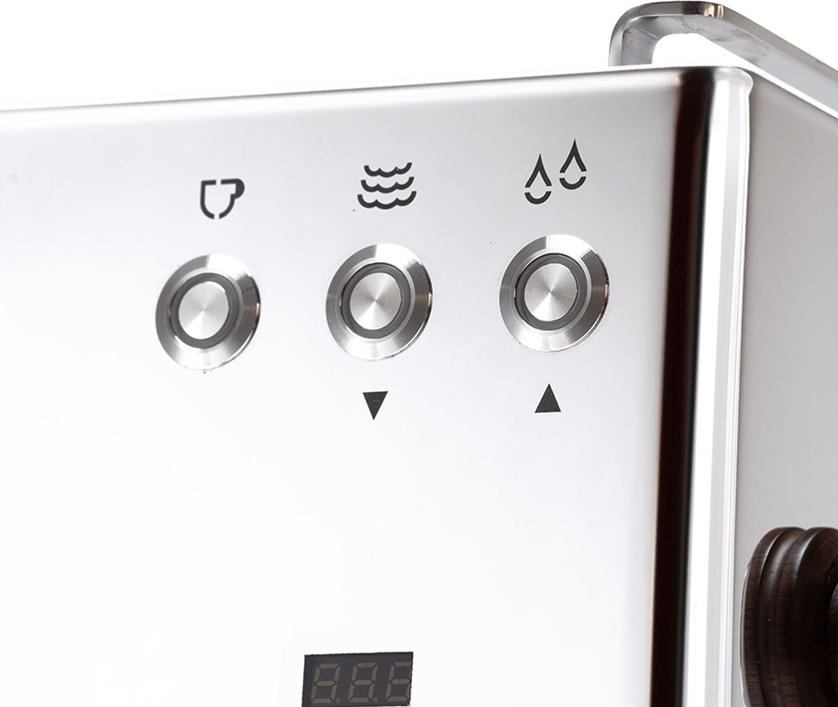 Parní tryska je multidirekční a chladnější na dotek, což usnadňuje a zpříjemňuje napěňování mléka. Dřevěný detail na parním kolečku dodává stroji teplý a prémiový pocit.