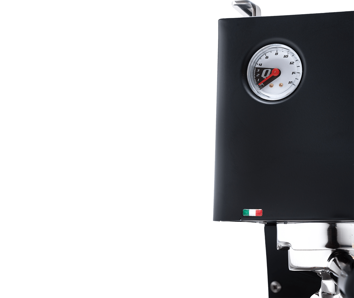 Materiál: Plně nerezová ocel; k dispozici v oceli nebo matné černé; Quick Mill skupina s O-kroužkem; anti-spalovací parní tryska