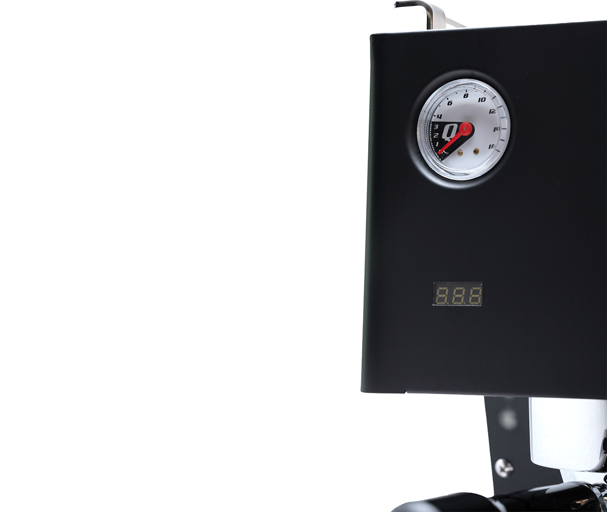 Díky manometrům pro tlak pumpy i bojleru přesně vidíte, jak stroj pracuje a jak vaše nastavení ovlivňují extrakci.