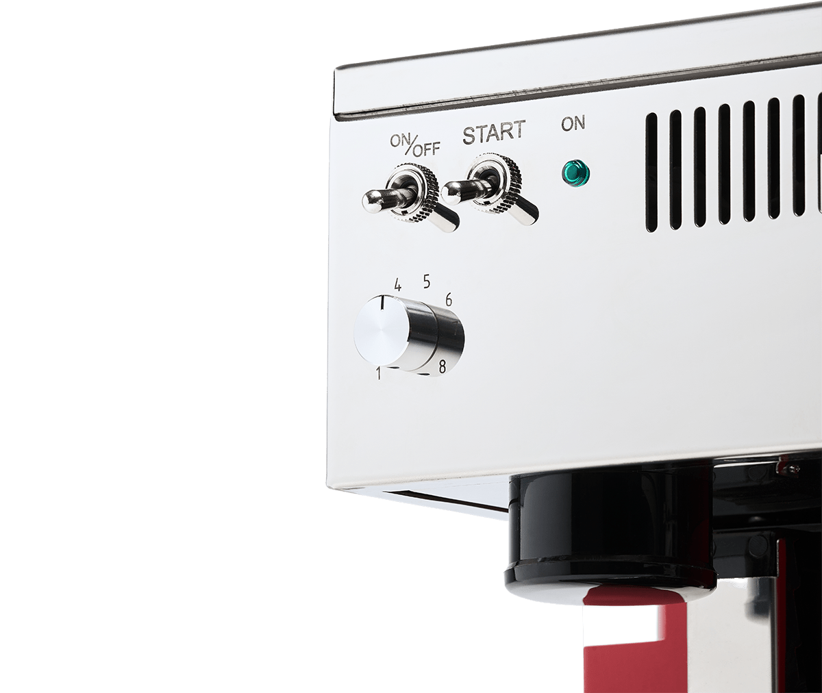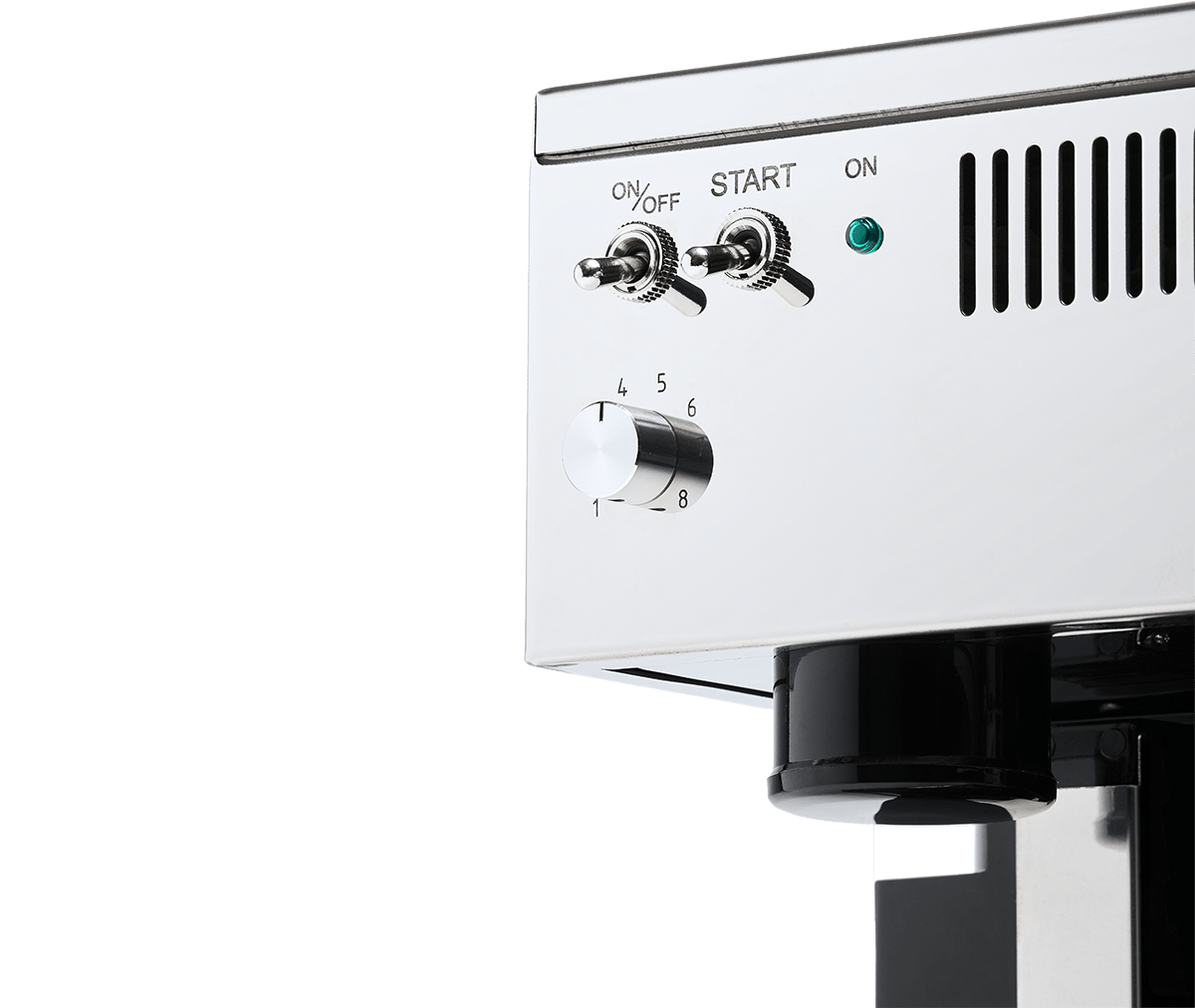 Retrò má integrovaný mlýnek na espresso s 43mm plochými mlecími kameny, které zajišťují rovnoměrnou velikost částic a lepší extrakci. Postupné nastavení mletí a kontrola dávkování usnadňují nalezení správného nastavení pro vaše zrna.