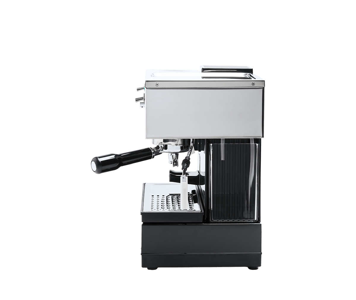 Materiál: Plastové tělo s nerezovým vrškem; Quick Mill filtrovaná kávová skupina s O-kroužkem; parní tryska s aerátorem