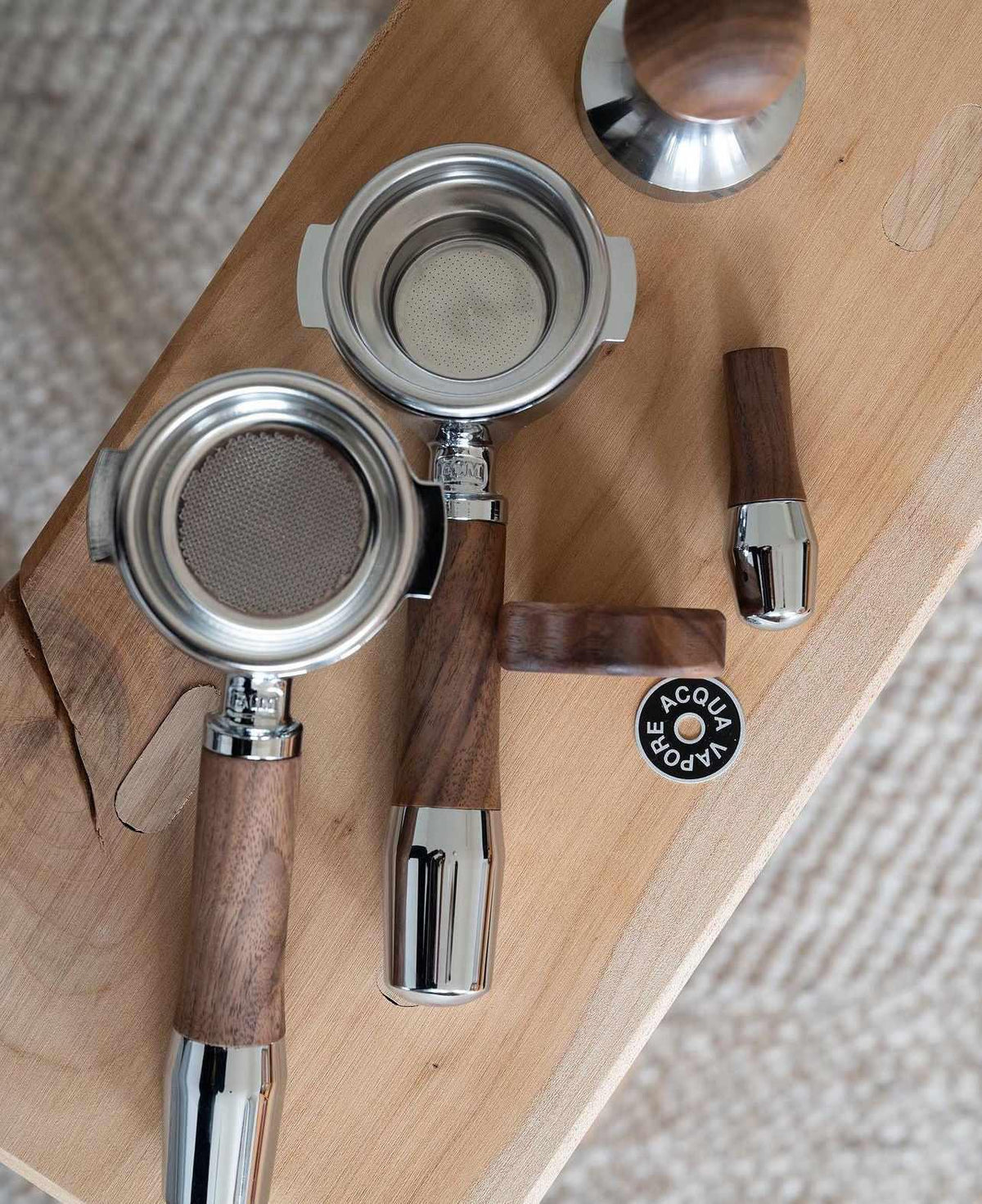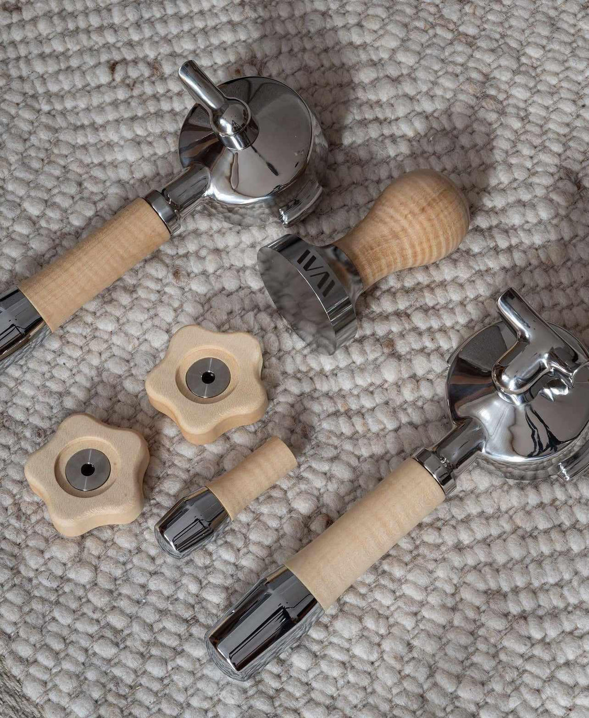Naše rukojeť s designem "Elegant" je dodávána s originálními portafilterovými hlavami od ECM, zatímco všechny ostatní portafiltery mají portafilterové hlavy z nerezové oceli. Každý den poskytuje naše rukojeť haptický zážitek, který je jedinečný. Naše dřevo je ručně ošetřeno organickým tvrdým olejem, aby si zachovalo přirozený pocit dřeva.